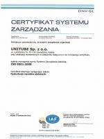 W naszej firmie wdrożyliśmy i utrzymujemy System Zarządzania Jakością, który został certyfikowany na zgodność z normą PN-EN ISO 9001:2015 przez Det Norske Veritas. Certyfikat ISO 9001 potwierdza wysoki stopień organizacji procesów wewnętrznych w firmie i gwarantuje sprawną realizacją zamówień złożonych przez naszych klientów.